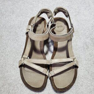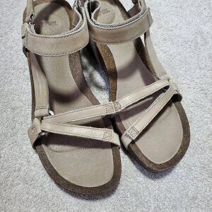 TEVA Ysidro Universal Strappy Wedge Sandals Leather Cork Taupe Brown Women's 9