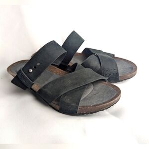 TEVA sandals Size 7.5 Women Model Mahonia Slides Black And Tan Color