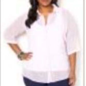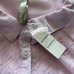 TEXTURED BUTTON DOWN TUNIC, SOFT LILAC, SIZE 5X, 3/4 SLEEVES WITH TABS, PENNINGTONS, IN ORIGINAL BAG, TAG ON, NEVER WORN