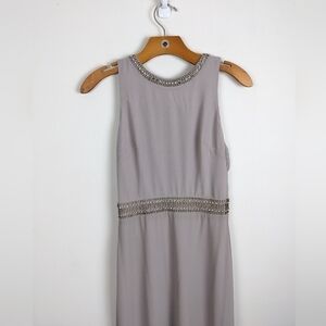 A pewter pale grey stunning Maxi dress , excellent for a Bridesmaid or a wedding !