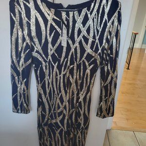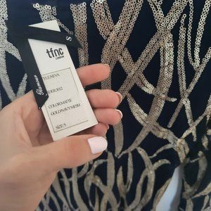 TFNC London Neva Sequin Dress (Navy with Gold Sequin Detailing)
