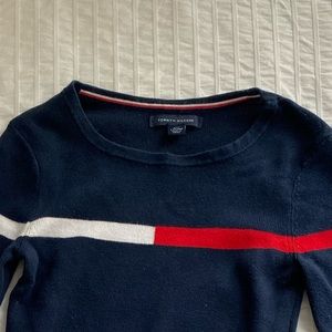 Snug fit Tommy Hilfiger sweater. This is so warm and goes so well with hight waisted pants or jeans.