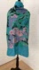 Blue Thai Silk scarf with pink, black green and gold floral botanical pattern. Wear this as a wrap or shawl or as a head scarf.