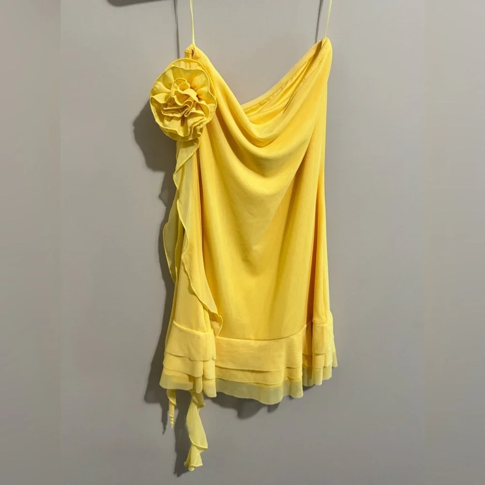 THALIA FLOWER PIN RUFFLE MINI DRESS