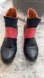 The Art Company side zipper leather ankle boots. 3" tapered rubber French heel, 100% rubber sole. Comfort Sole System. Two tone red and black colorblock design. Note the red is not bright red, more of a faded red.