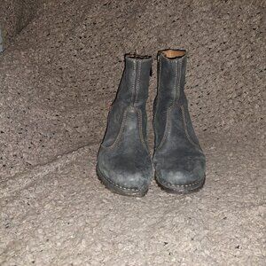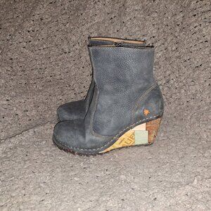 THE ART COMPANY-Detailed Wood Wedge Heel Booties-Gray Nubuck-Sz 37-EXCELLENT