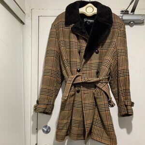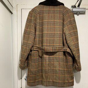 THE DOWNTOWNER VINTAGE FAUX FUR WOOL BLEND PLAID COATS SIZE 42/L