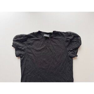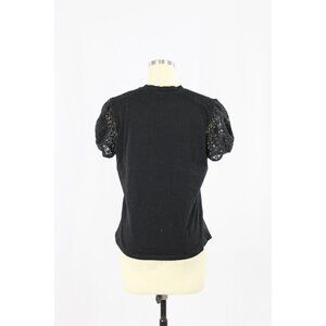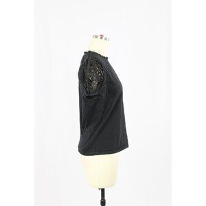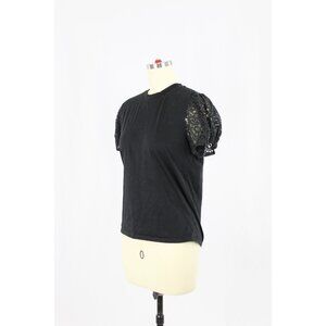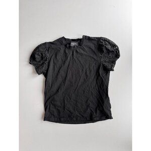 THE KOOPLES Black Cotton Jersey Lace Puff Sleeve Crew Neck T-Shirt Top, Size 1/S