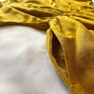 THE KORNER MUSTARD YELLOW SURPLICE LINEN BLEND EMPIRE WAIST MIDI DRESS - XS