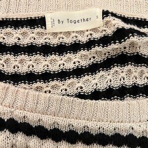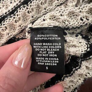 A gorgeous oversized black and white knit sweater from the Latest Scoop. Size small (smallest size). Meant to fit oversized and hit just above waist.