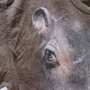 THE MOUNTAIN Hippo Print Distressed Tie Dye T-Shirt in Brown Hippie Y2K Boho XL