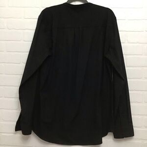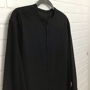 THE Melange black men’s long sleeves button down shirt mandarin collar L…