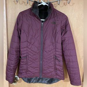 Women's The North Face Mossbud Reversible Jacket. Full zip jacket. Quilted fabric on one side and Osito on the other. Purple/burgundy and brown Osito fabric. Good condition!!