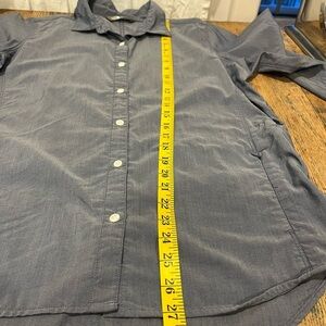 Lightweight grey button-up shirt with long sleeves, adjustable button cuffs, and a classic collar. Features a slightly fitted cut with a back waist seam for shape. Ideal for outdoor activities or casual wear.