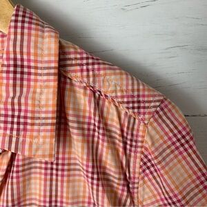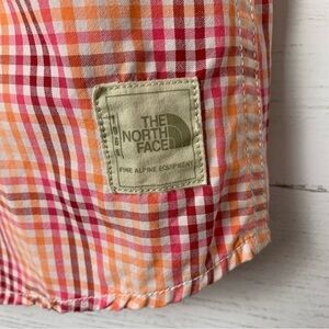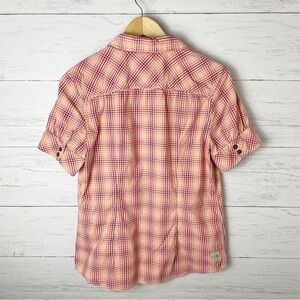 THE North Face Plaid Short Sleeve Button Down Shirt Orange Pink Golf Hiking