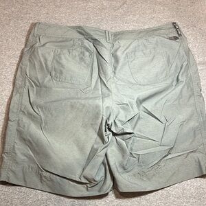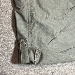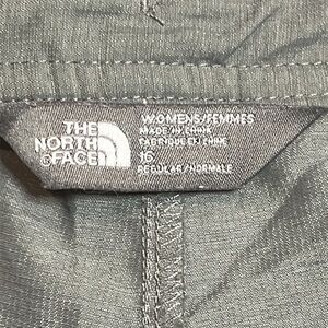 The North Face grey shorts. Women’s size 16, next to new condition, no stains, piling or wear. Legs have roll up feature with snap on the side. Front zipper and snap button closure, with an inside tie at waist. 2 front, and 2 back pockets, and 1 inside “stow” pocket. Inseam length is 10 inches.