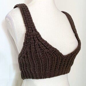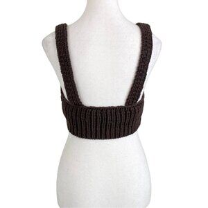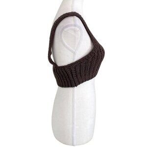 THE OPEN PRODUCT DARK BROWN KNIT CROPPED BRA TOP STYLE GTO223JT004 - M