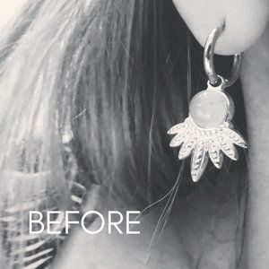 Simply stick them to the back of the ear, making sure to cover the piercing area. Then insert your earring as usual. If your piercings are torn or stretched, take care to insert your earring in the upper part of your piercing. You'll be delighted with the result.