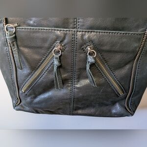 THE SAK Black Leather Shoulder Or Crossbody Bag Zipped Pockets