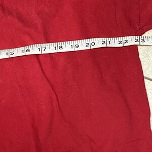 The sweater shop red T-shirt, very rare, none for sale on any of these sites. Perfect condition. There is no size stated anywhere that I can find and all the labels seem to be there. I did take the measurements and they are in the pictures.