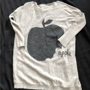 Cozy gray sweater featuring a bold textured dark grey/ black apple graphic. Perfect for casual wear or wear to work. Cinched arms makes this sort of a batwing style top. No size tag please see below. Fits like medium.