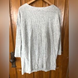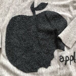 Cozy gray sweater featuring a bold textured dark grey/ black apple graphic. Perfect for casual wear or wear to work. Cinched arms makes this sort of a batwing style top. No size tag please see below. Fits like medium.