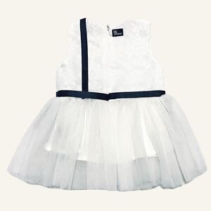 This gorgeous little dress is by rad Swedish brand The Tiny Universe. The are sooooo right up my alley! B&W designs with subtle but strong details. This rad little piece has a white floral detailed woven bodice, ribbon detailing across the front and back, triple layered tulle overlay for added volume, fully lined with thin cotton and cool branding at the back. Get this in your bundle with some flats, cardigans and jacket for a styled closet discount!