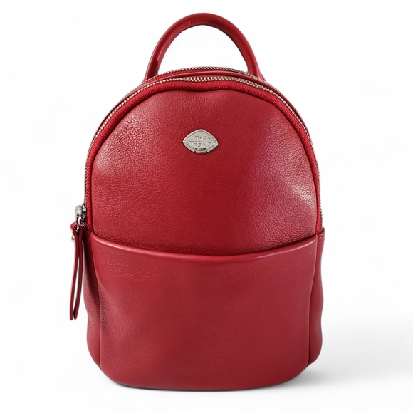 Italian leather backpack, red mini purse, minimalist bag, city chic, travel essentials, The Trend Italy, genuine leather, street style, everyday backpack, modern classic, capsule wardrobe