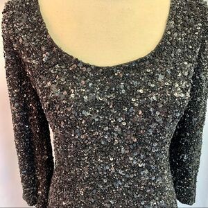 Theia Couture Sequin Sheath Black Dress Sz 12