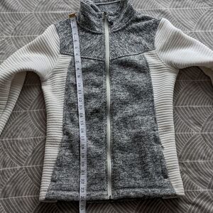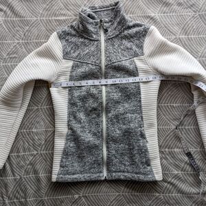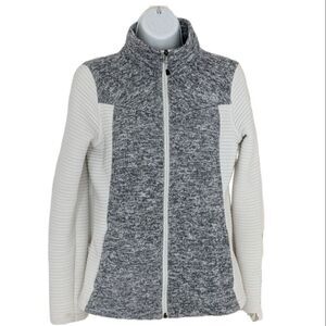 THE NORTH FACE two tone grey and white fleece lined jacket zip pull Small B1