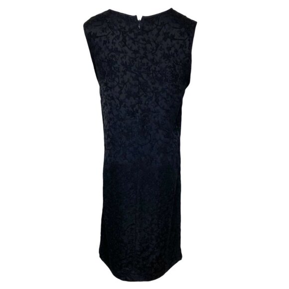 THEORY ADRAYA IVY BLACK JACQUARD EMBROIDERED SLEEVELESS DRESS STYLE G0706638,Textured ivy jacquard- Shift silhouette - tailored at waistline -not stretch - lined - back zipper closing - sleeveless - round neckline - embroidery in a jaquard viscose fabric - Mini length for a sexy yet sophisticated dress - perfect little black dress for a first date, cocktail, fancy dinner at a restaurant or a party / cocktail with a minimalist classic vibe.
