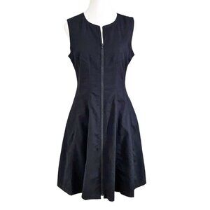 THEORY BLACK SILK BONBI FRONT ZIP SLEEVELESS A-LINE FIT & FLARE DRESS - 8