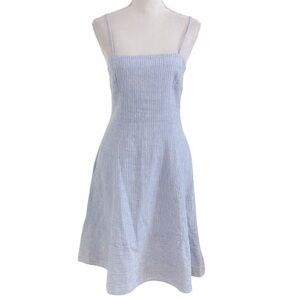 THEORY BLUE WHITE STRETCH LINEN BLEND PERFECT TEA DRESS - 2