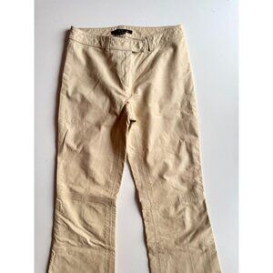 THEORY Beige Genuine Leather Low Rise Bootcut Pants, Size 2