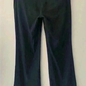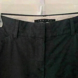 These black wide-leg pants by Theory feature a flared silhouette, hip pockets, zip/clasp closure and a cotton stretch fabric make up.