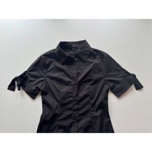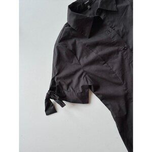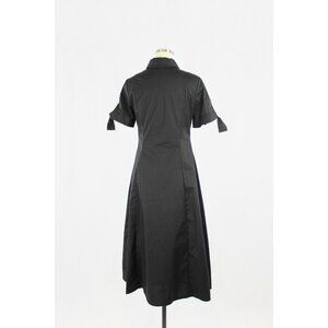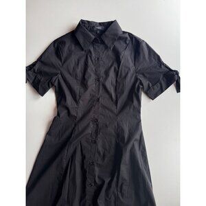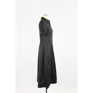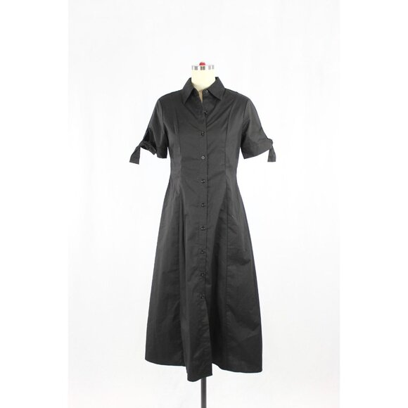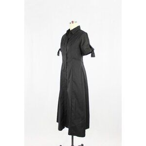 THEORY Black Stretch Cotton Poplin Tie Sleeve A-Line Midi Shirt Dress, Size M