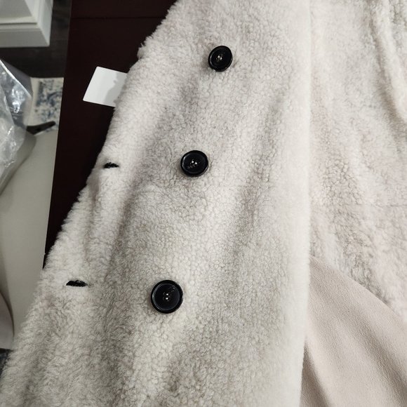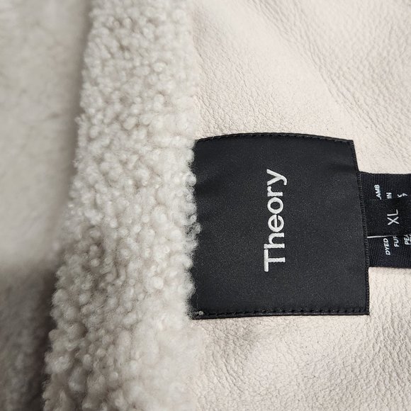 THEORY Double-Breasted Lamb Leather Shearling Coat
