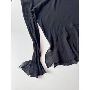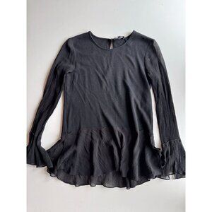 THEORY Lexanda Black Knit Sheer Silk Chiffon Bell Sleeve Peplum Blouse, Size S