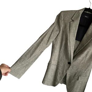 THEORY Grey Linen Blend Single Button Front Long Sleeve Blazer Jacket