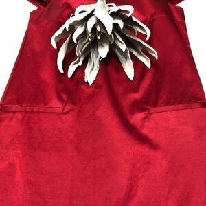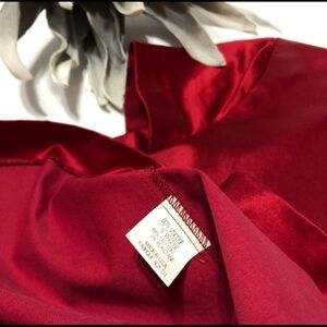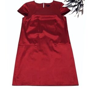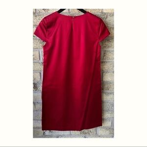 Gorgeous little red dress perfect for the holidays • EUC • Beautiful fabric resembles tuxedo material • Cap sleeves • Front faux welt pockets • Bust darts • A-line • Back button closure • 6th pic shows slight soiling by armpit — garment may require dry cleaning • 50% Viscose / 48% Cotton / 2% Elastane