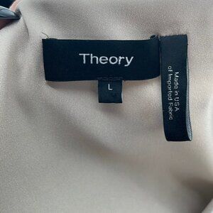 THEORY Paneled Crepe Long-Sleeve sheath dress pockets grey lined career sz lg