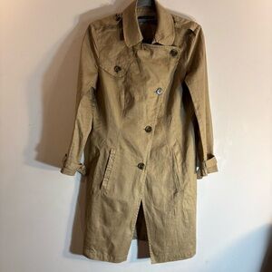 THEORY Sz M Nania Hummingbird 100% Linen Trench Coat Pockets Buttons. Sophisticated and trendy. Elevated classic. Gorgeouss statement piece. Unlined.