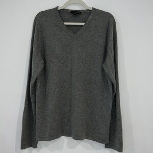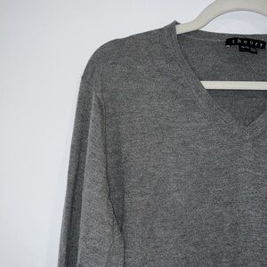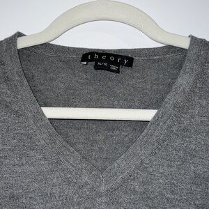THEORY Men light gray V-neck Cashmere and Silk Timothy Silkcash sweater with patch elbows size XL