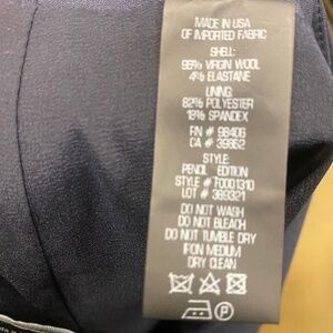 THEORY navy straight skirt with stretch, size 6, made in USA, wool with 4% elastane shell and polyester & elastane lining