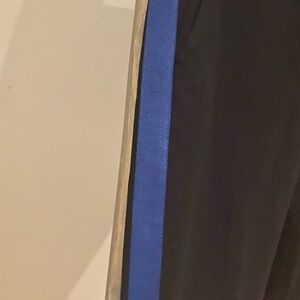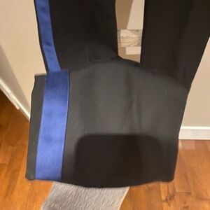 Euc size 4 theory suite pants. The pants are black in color with a fun blue stripe down each leg seem. The pants also have Two back pockets with button closures.