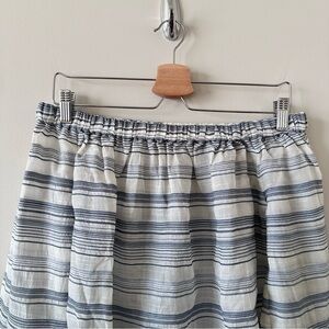 THEORY-STRIPE Silk Blend Off Shoulder Bell Sleeve Blouse (Size:Small)