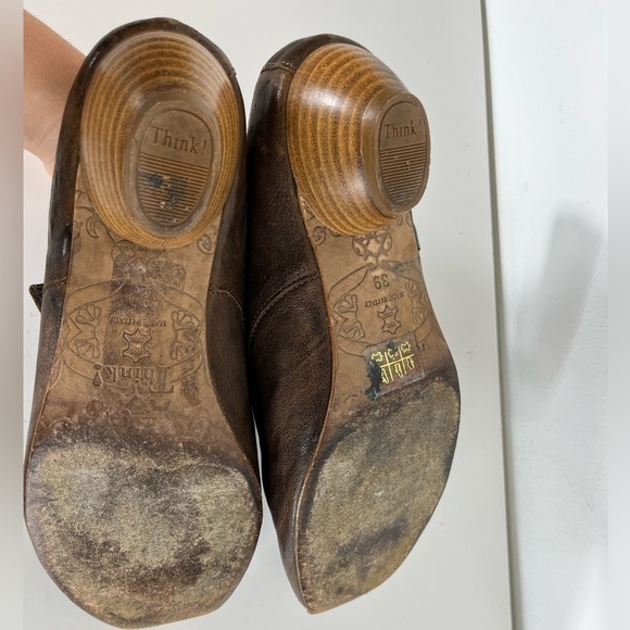 THINK Aida Mule Mary Jane Leather Slip-on Clogs Women's Size 8 Eur 39