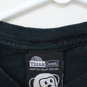 A rare ThinkGeek brand humourous t-shirt depicting the hand sign for 4 in binary code, which at first glance looks like flipping the bird. The back of the shirt shows the rest of the hand signs.