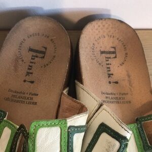 THINK! Women's Julia Window Thong sandals size 41 or 10.5 green cream