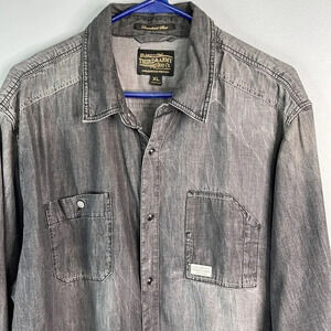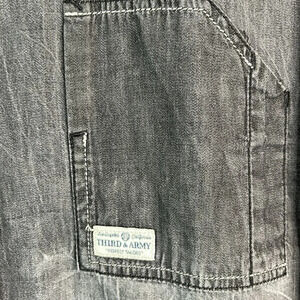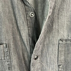 Mens grey Black fade wash look Third & Army Denim Co Los Angeles “Laundered Shirt” Chambray Denim Look Pearl Snap Shirt.